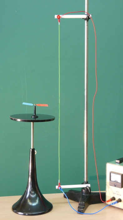 Соединительные провода оконцованы типовыми штекерами. Их длина позволяет подключать провод - объект наблюдения - к источнику электропитания без заметного влияния их магнитных полей на результат опыта.
