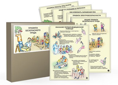 Пособие содержит комплект таблиц с наглядными материалами, предназначенными для проведения с учащимися средней и старшей школы занятий по правилам безопасного труда – в рамках урока ОБЖ, классного часа или внеклассного мероприятия и содержит информацию об общих правилах безопасного труда,правилах труда при выполнении летних работ на пришкольном участке, в саду и огороде (требования к рабочей одежде, подготовка и правила обращения с ручным инструментом, правила при сборе урожая, правила работы с тяжелыми предметами, правила безопасности при обращении с животными и др.); основных правилах электробезопасности; мерах первой медицинской помощи при возникновении травм, ожогов или солнечном ударе.