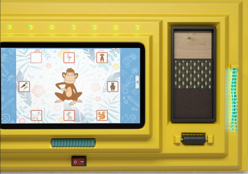 Перед вами отличный развивающий интерактивный детский комплекс, который сможет удивить и порадовать ребят обилием своих возможностей! Что же вы сможете увидеть на этой замечательной панели солнечного цвета? Например тут есть фибероптические волокна, которые светятся очень четко и ярко. Такие волокна видны даже при полностью освещенном помещении! Они помогут развить у ребят зрительную память, а также смогут снимать у детей стресс. Модуль бесконечность - еще одно открытие! Он сможет порадовать малышей самыми разнообразными яркими цветами и красивыми эффектами. Модуль реагирует на звук и в зависимости от его интенсивности меняют свой цвет. Так у детей может развиваться голос и зрительная память. Специальная панель с различными на ощупь поверхностями поможет слабовидящим детям развить сенсомоторную чувствительность пальцев. Также для развития чувствительности тут есть тактильная ребристая кнопка и барабан с маленькими неострыми шипами. А для развития логопедических навыков и мышления в центре панели расположен специальный интерактивный планшет с множеством веселых игр. Все игровые элементы на панели изготовлены качественно и на долгие года работы. Разнообразие игр и упражнений не оставит равнодушным детей и панель “Мир веселья” подарит малышам массу положительных эмоций.