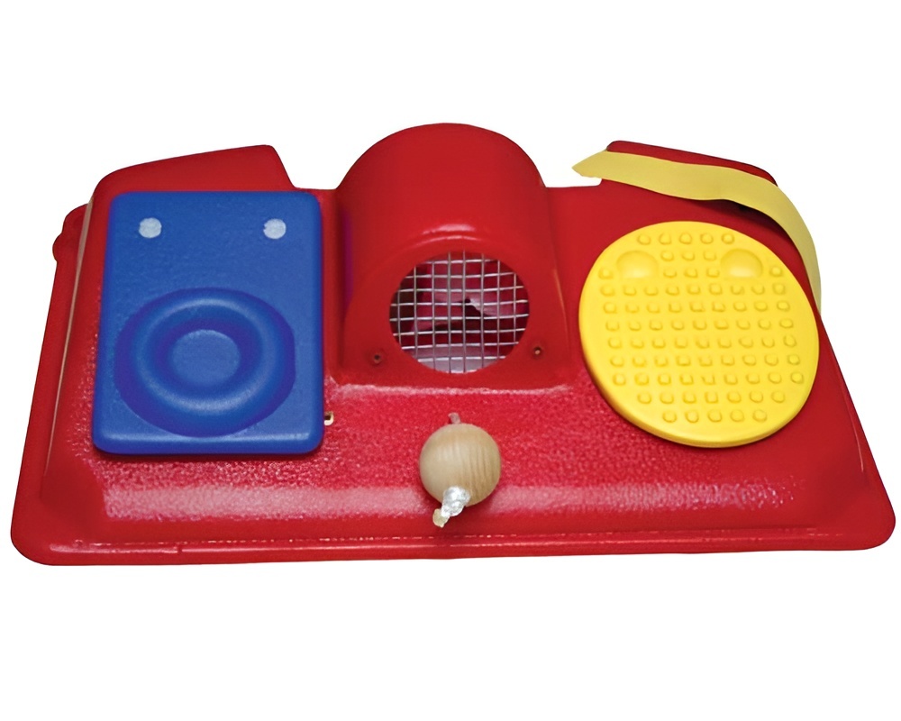 Данный развивающий центр специально разработан, чтобы вовлечь в мир игры детей, которые не могут видеть или слышать. Центр обеспечивает играющему фантастическое многообразие тактильных ощущений – от осязания мягкой ткани до вибрирующей тарелки.