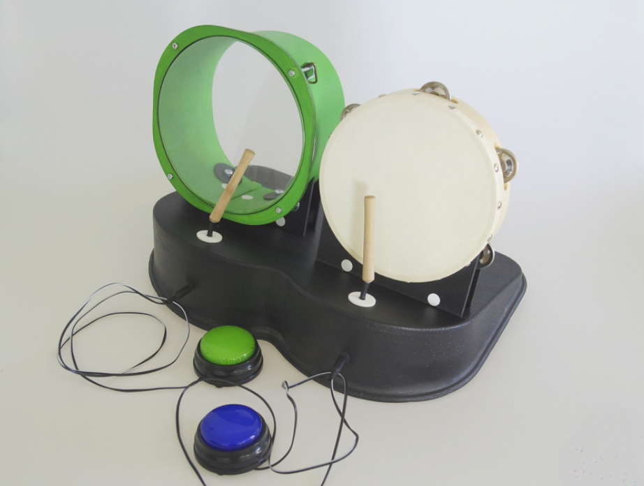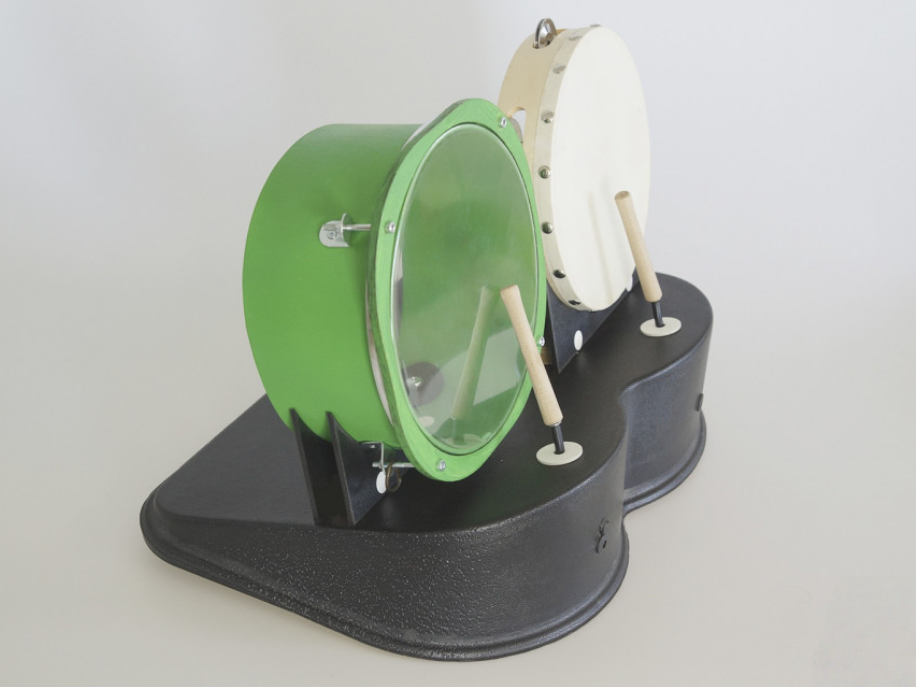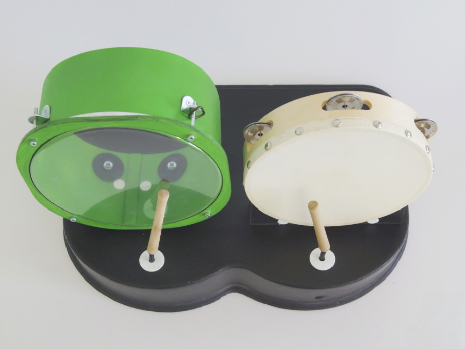 Барабаны Бонго – это электро-механическое устройство с подвижными частями. Основное предназначение - занятия с детьми, позволяющие развивать слухоречевой аппарат и чувство звукового такта. Состоит из основы, закрепленными на ней двумя барабанами с бубном, вращающимися барабанными палочками, кнопки активации электромотора, а также разъем 3,5 мм. (2шт. - для каждого из барабанов отдельный) для подключения дополнительного девайса. На нижней части имеется батарейный отсек для четырех элементов питания. Барабаны можно активировать при помощи дистанционной подключаемой кнопки через разъем 3.5 мм. Занятия можно проводить как с одним ребенком, так и с группой детей под руководством педагога.