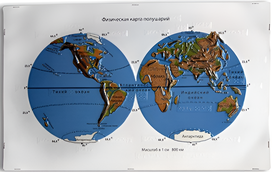 Пособие для слабовидящих - Физическая карта полушарий - fgospostavki.ru - Тула