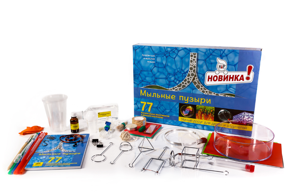 Развивающий набор «Мыльные пузыри» для детей и взрослых предназначен для исследования мыльных пленок и пузырей. Несмотря на кажущуюся простоту изучаемого предмета, явления, о которых вы узнаете, необычны и удивительны. В комплект входит книга с подробным описанием экспериментов.