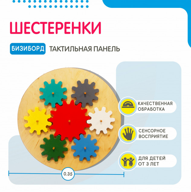 • Улучшение моторики и координации: игра с Бизибордом помогает развивать мелкую моторику рук. Дети учатся вертеть и собирать шестеренки, что способствует развитию координации движений.