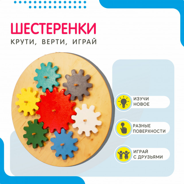 • Детских центров развития: Бизиборд с шестеренками поможет занимательно и эффективно развивать интеллектуальные и творческие способности детей разных возрастов.