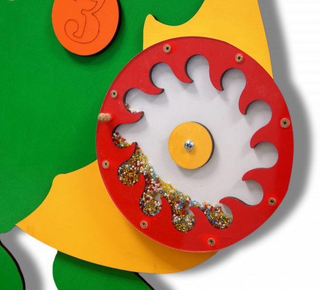 • Малыш касается пальцами шестеренку, и она начинает движение, как по часовой стрелке, так и против, задевая «зубчатыми» краями других - так все шестеренки двигаются.