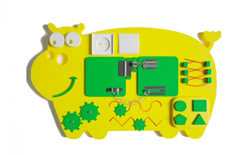 Бизиборд в виде бегемотика напоминает героя из любимого мультфильма, радуя малыша изо дня в день. Бизиборд обладает всеми необходимыми элементами, чтобы удивлять, а самое главное развивать у ребенка логическое мышление, концентрацию внимания, а также память, мелкую моторику и не только.