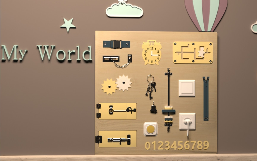 Развивающий бизиборд прекрасно подходит для занятий дома, в детском саду или развивающем центре, а главное, в любом месте, в любое время работает во благо ребенка, развивая моторику и мышление, концентрацию внимания и усидчивость, память и не только.