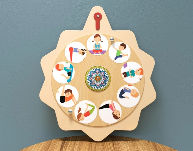 Этот замечательный, оригинальный и красочный игровой модуль предназначен для занятий физической культурой в непринуждённой игровой форме. Имеет форму двойного круга, наименьшая часть которого вращается, на ней размещены 9 круглых аппликаций с изображением упражнений. Поверхность отшлифована и обработана по специальной технологии и является абсолютно безопасной в использовании даже для самых маленьких деток.