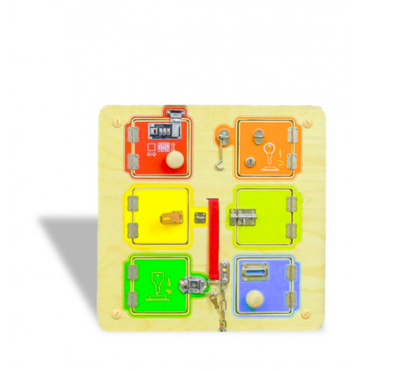 Панель с яркими замочками - это красивая игровая зона, которая выполнена из качественных материалов и не оставляет зацепок в детских ручках. Панель представляет собой разноцветные разные замки. Каждый открывается по-своему, есть даже ключ и сейф с паролем. Панель заинтересует как маленьких детей, так и постарше, а родителям поможет сохранить дом в целости и сохранности. Она подойдет для домашнего использования и для специальных учреждений.