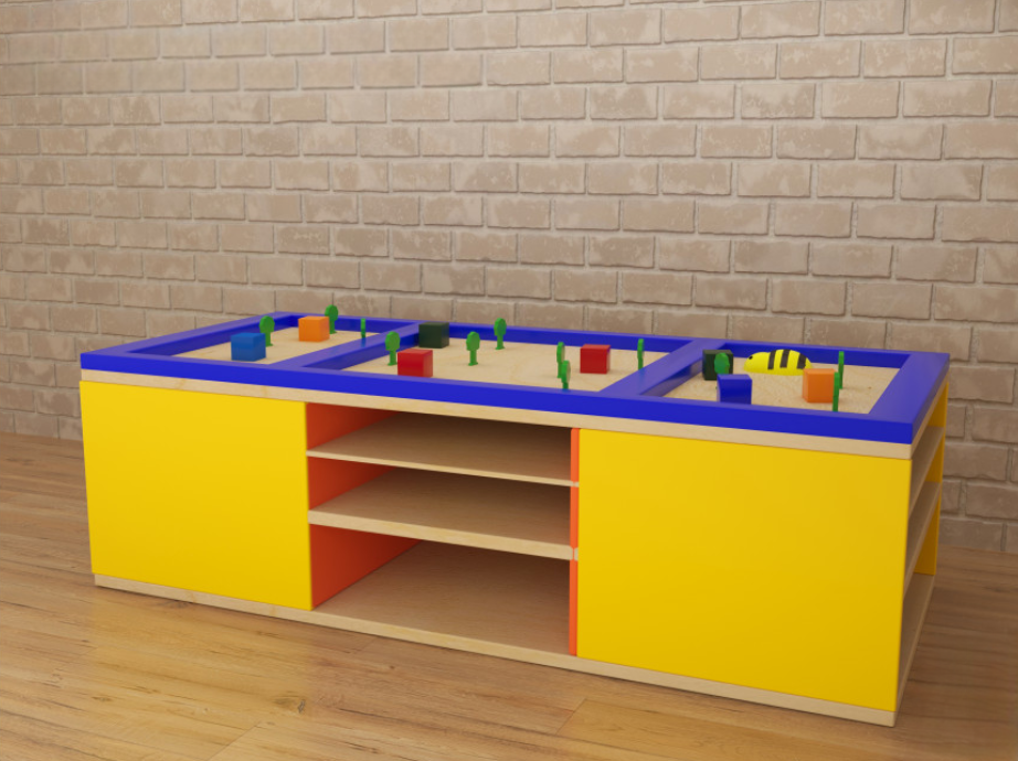 Главное преимущество представленного дидактического модуля – рациональное использование имеющихся площадей – на столешнице расположено сразу 3 изолированных друг от друга ландшафтные локации с игровыми фигурками, под столешницей имеются вместительные полки для хранения игровых наборов; всё это делает его необходимым элементом оснащения пространства для занятий с детьми. Столешница обладает широким игровым потенциалом – используя методические рекомендации и разнообразные игровые наборы, можно многократно увеличить диапазон её использования. Ландшафтные столы широко используются дошкольными педагогами и некоторыми узкими детскими специалистами – логопед, дефектолог.