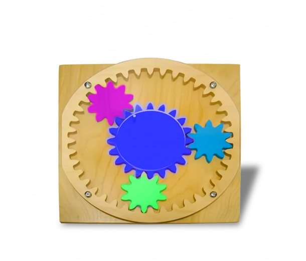 Главная Каталог Оборудование для сенсорных комнат Тактильное оборудование Тактильно-развивающая панель «Цветные шестеренки»