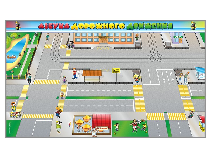Панорамная магнитно-маркерная доска представляет собой информационную панель, на которой изображена демонстрационная схема дорожного движения участка города, включая проезжую часть, трамвайные пути, перекрестки, пешеходные переходы, остановочные площадки, а также объекты социальной инфраструктуры. Предназначена для ознакомления детей дошкольного и школьного возраста с правилами безопасного поведения на дорогах и в пределах жилой зоны, закрепления знаний об элементах дороги, развития внимания и умения оценивать действия пешеходов.