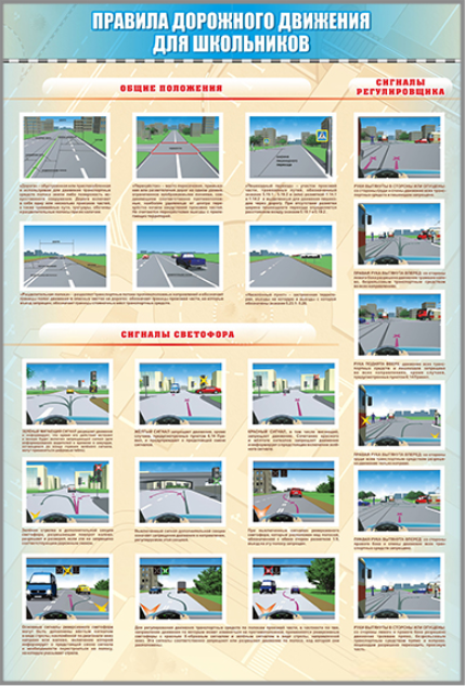 Стенды представляют собой информационные панели, на которых размещены правила дорожного движения для школьников как юных участников дорожного движения.