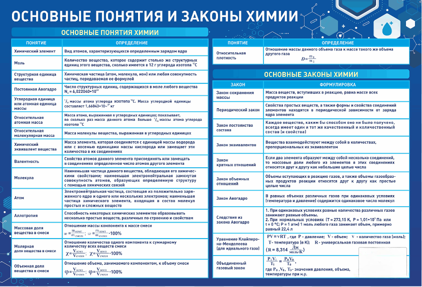 Стенд "Основные понятия и законы химии" - fgospostavki.ru - Тула