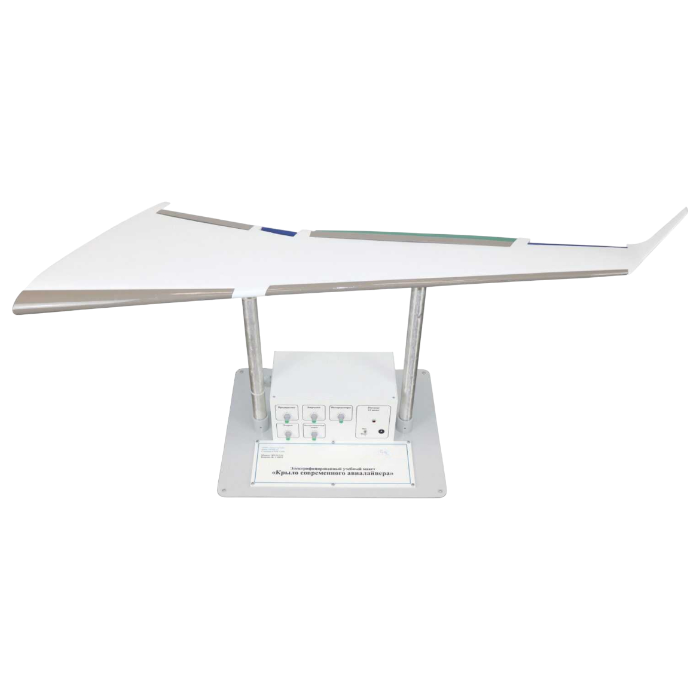 Учебный макет представляет собой масштабную копию консоли крыла пассажирского самолета ИЛ - 96, с отклоняемыми элементами механизации и управления (предкрылки, закрылки, элероны, интерцепторы и т.д.), все элементы имеют цветовую дифференциацию и позволяют легко их идентифицировать.