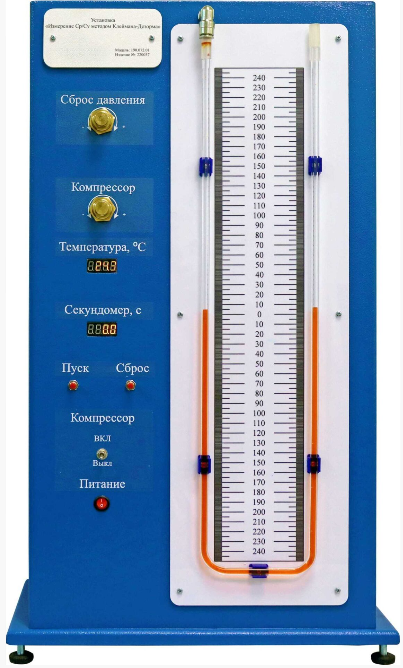 Позволяет экспериментально определять отношения теплоемкостей Cp/Cv методом Клемана-Дезорма для воздуха.