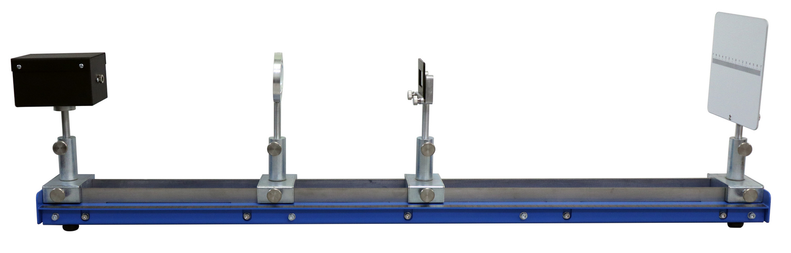 В состав установки входят: источник питания, осветитель с ртутной лампой, осветитель с натриевой лампой, оптическая скамья, оптический набор для организации проекции, дифракционные решетки.