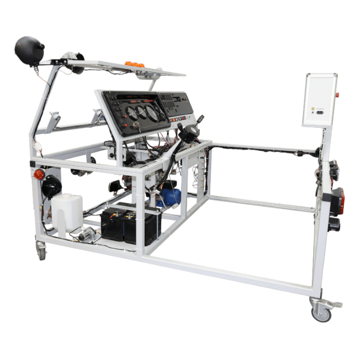 Стенд-тренажер предназначен для изучения электрооборудования автомобиля КамАЗ, отработки навыков поиска и устранения типовых неисправностей, которые возникают в процессе эксплуатации автомобиля, техническому обслуживанию и ремонту автомобиля, получению навыков по диагностике неисправностей электрооборудования.