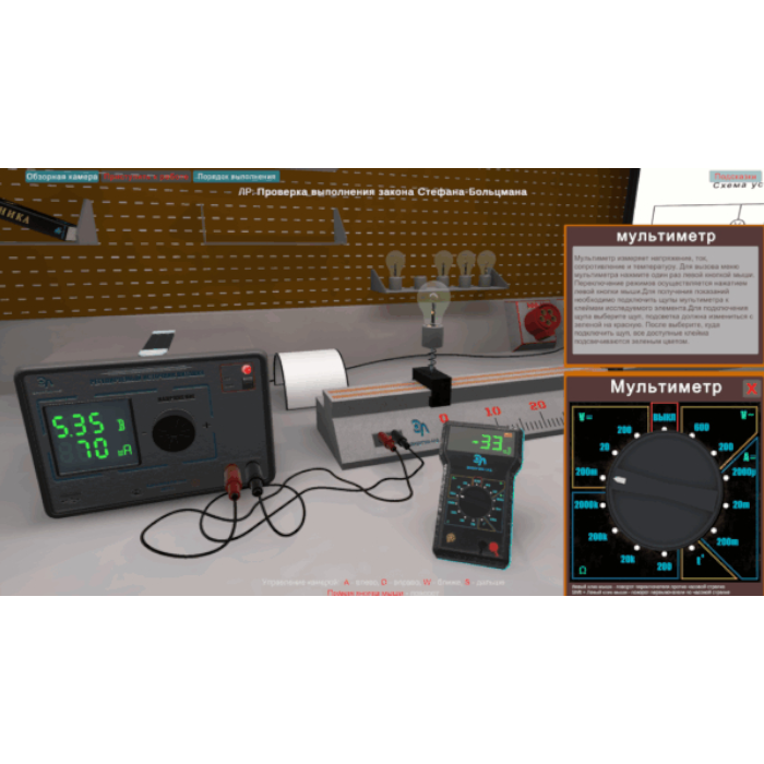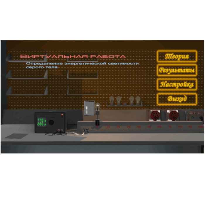 Виртуальная работа «Выполнение закона Стефана-Больцмана» выполняется в программном виртуальном продукте и предназначен для интерактивного выполнения лабораторной работы.