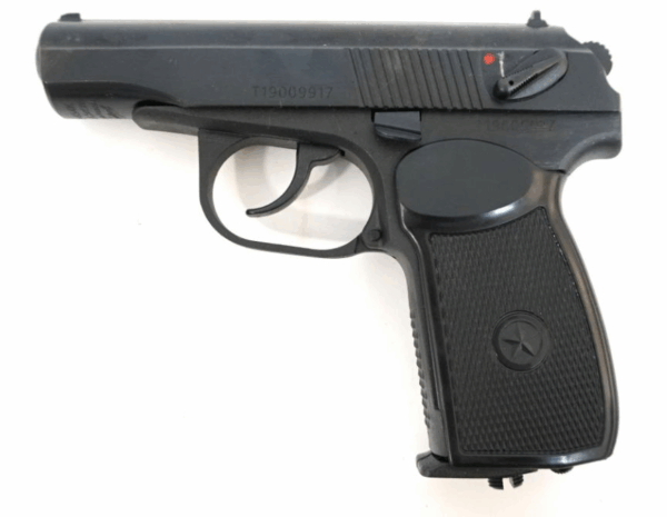 Массогабаритный макет 9 мм пистолета Макарова изготовлен на базе пневматического пистолета Макарова. В пистолет интегрирован лазерный модуль, элементы питания и управляющая электроника.